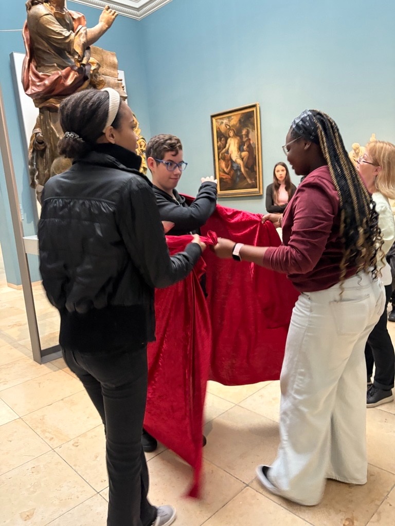 Ein weiteres Highlight war die Interpretation eines Stilllebens mit dem Thema Vergänglichkeit. Dabei erkannten wir, wie Künstlerinnen und Künstler mit Symbolen wie Totenkopf, welken Blumen oder Kerzen das Leben und den Tod darstellen. Zum Abschluss stellten wir sogar eine barocke Statue nach – eine kreative und unterhaltsame Übung, die uns den barocken Stil auf ganz besondere Weise näherbrachte.